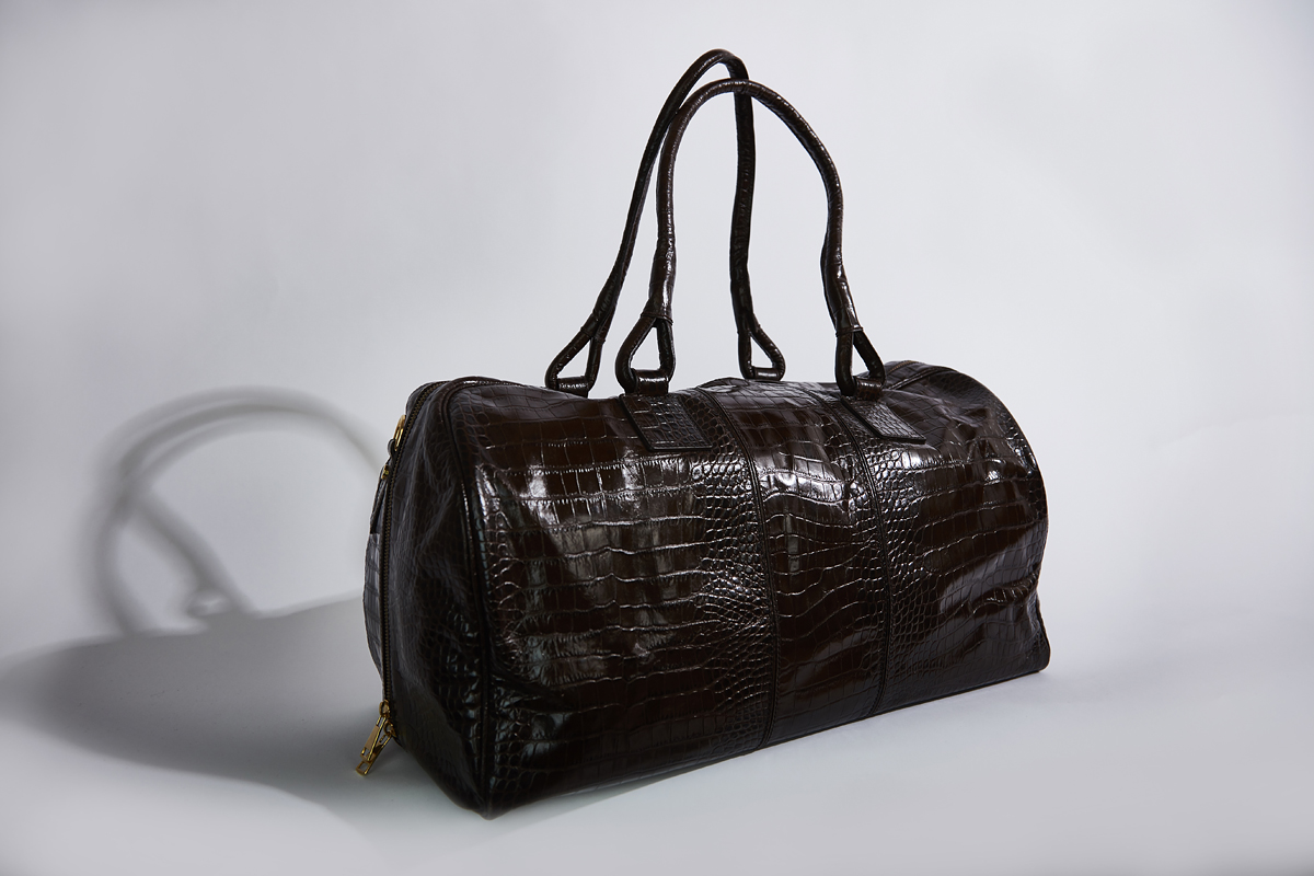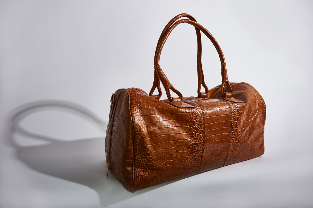 Handmade leather holdalls embossed with the Stephen Williams signature crest.