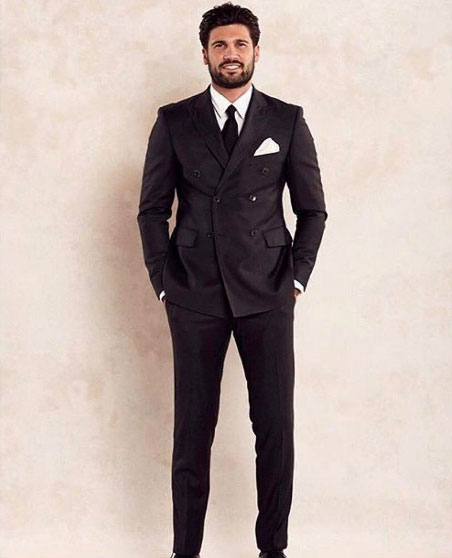 TOWIE star Dan Edgar wears a Stephen Williams London double-breasted suit to the 2017 National TV Awards.