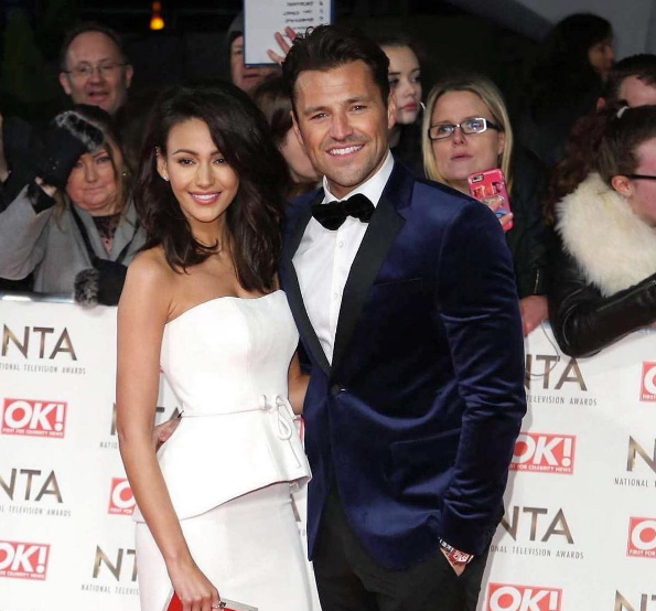 TOWIE star Mark Wright wears a Stephen Williams London peak lapel velvet dinner jacket, evening shirt and trousers to the 2017 National TV Awards.