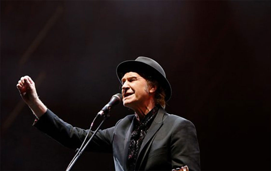Ray Davies, lead singer of legendary 60s rock band The Kinks, wears a Stephen Williams paisley pattern dinner jacket.