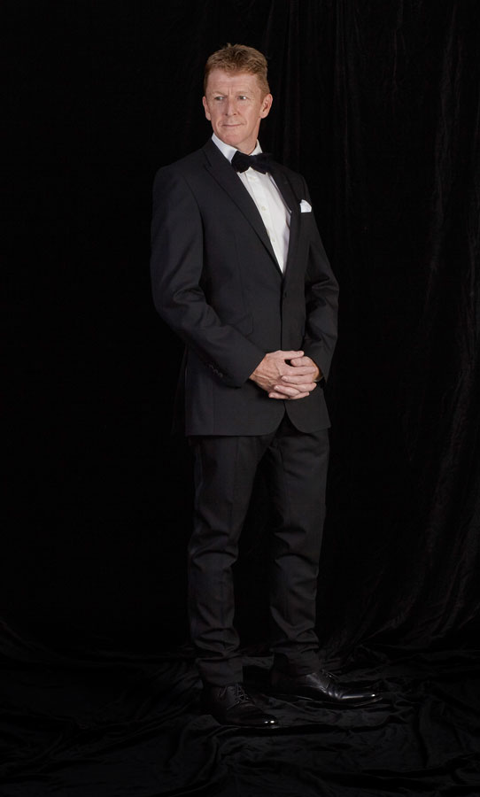British astronaut Tim Peake wearing a Stephen Williams London dinner suit to a red carpet event in Central London.