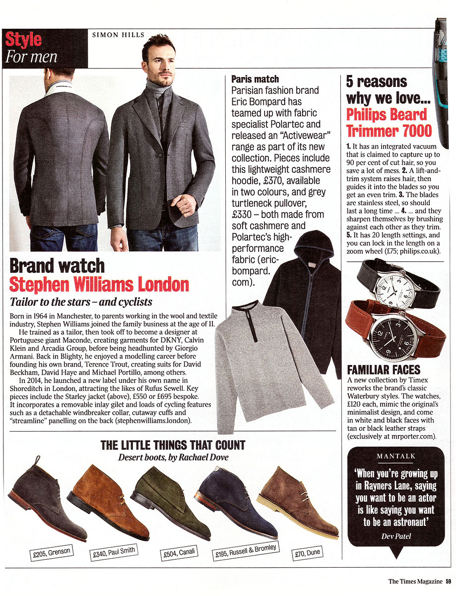 The Times Magazine features Stephen Williams London in ‘Brand Watch’ with images of the Starley Jacket.